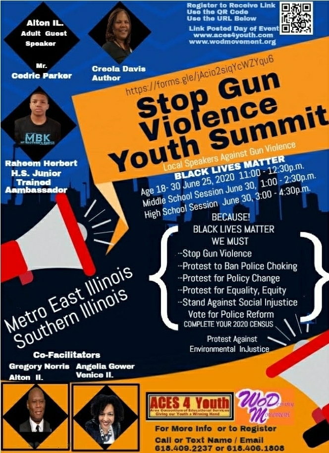There will be a "Stop Gun Violence Youth Summit," starting Monday, June 29, 2020. Please see attached flyer for more details.